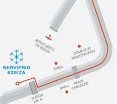 Servifrio Ezeiza SA se encuentra ubicado en el Kilómetro 41,700 de la Colectora de la Autopista Ezeiza-Cañuelas, en Tristán Suárez Partido de Ezeiza.